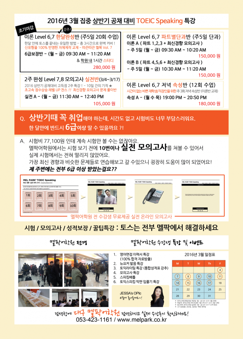 여러 이벤트 , 고득점을 위한 실전반 , 저녁 이론반까지 새롭게 만날 수 있는