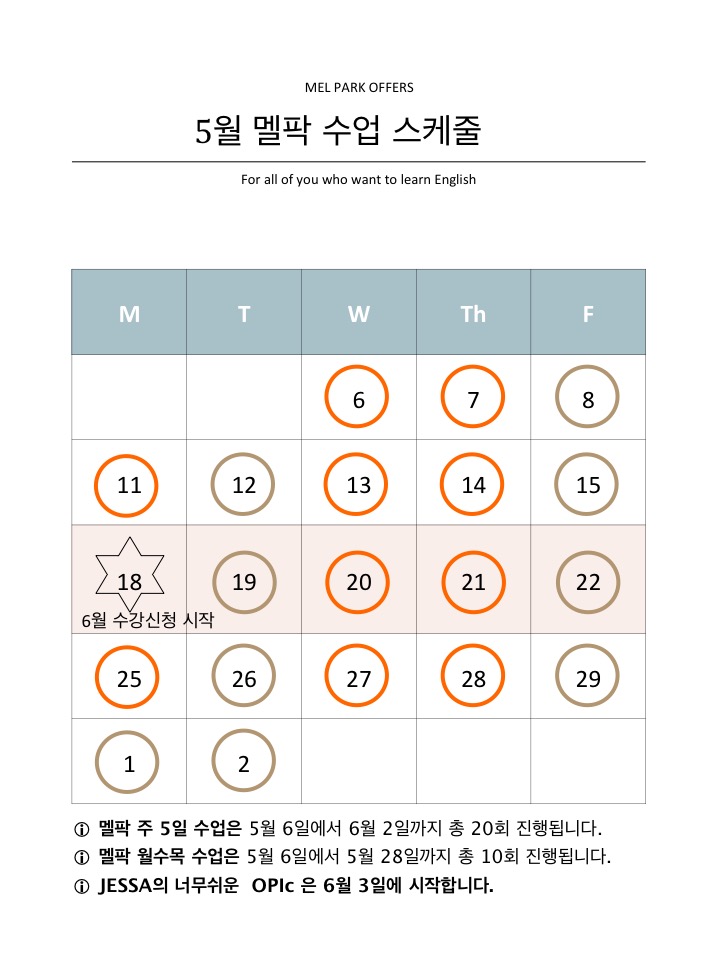 공지 | 멜팍어학원 5월 수업 스케줄 페이지 정보 작성자 MELPARK 작성일15-05-05 18:24 조회3,084회 댓글0건 이전글 다음글 목록 본문 멜팍어학원 5월 수업 스케줄 입니다. 댓글목록 등록된 댓글이 없습니다. 이전글 다음글 목록