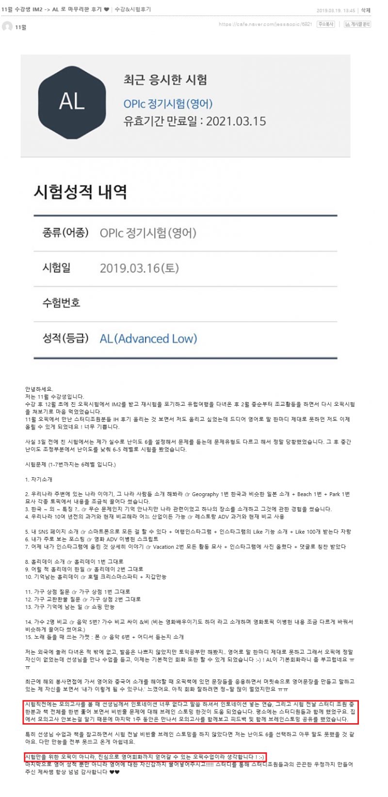 오픽 | (대구오픽 AL후기) IM2 -> AL 로 마무리한 후기 !!