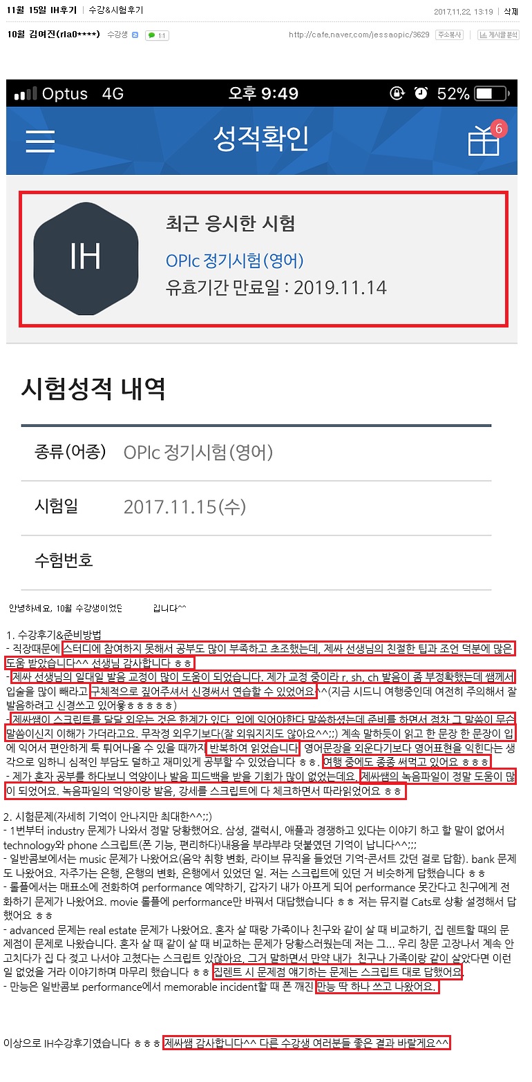 이상으로 IH수강후기였습니다 ㅎㅎㅎ 제싸쌤 감사합니다^^ 다른 수강생 여러분들 좋은 결과 바랄게요^^