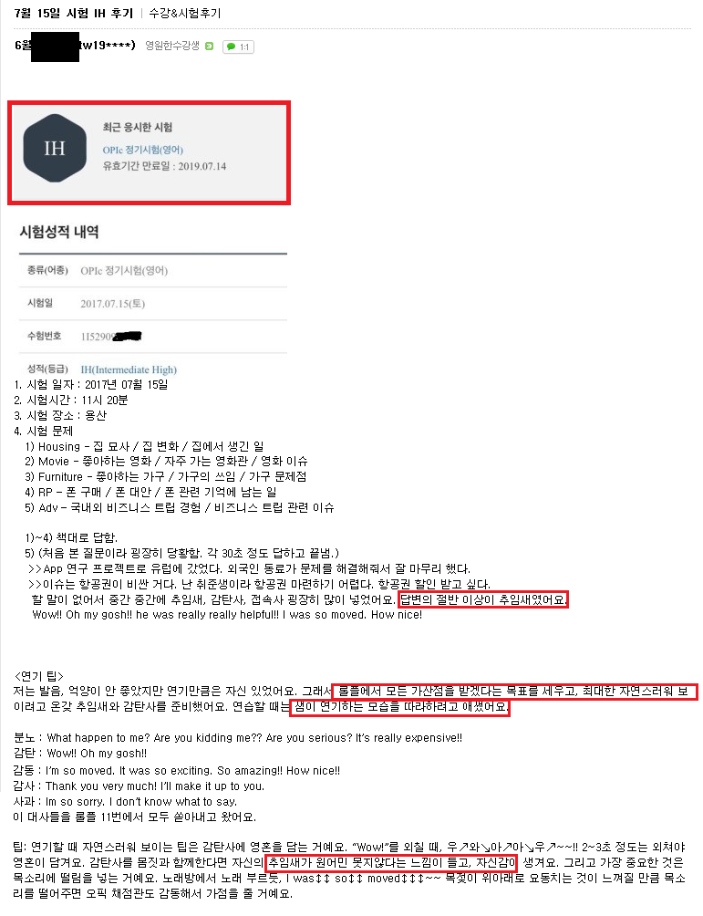 오픽 | (대구오픽 IH후기) 오픽 IH~! 고득점 방법 >_< 페이지 정보 작성자 MELPARK 작성일17-08-09 19:36 조회3,636회 댓글0건 이전글 다음글 목록 본문 (클릭 하시면 크게 보실 수 있습니다.) 수강생 후기 입니다.더 많은 후기는 우측 카페 링크 가입 후 보실 수 있습니다. 이전글 다음글 목록