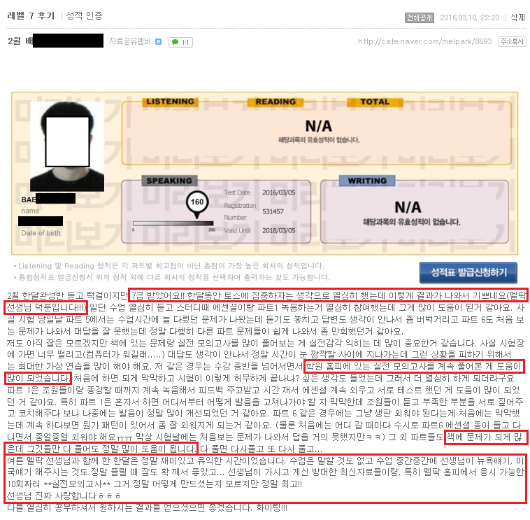 토스 | (대구토스 7급후기) 멜팍선생님 덕분에 7급 획득!! **실전모의고사** 최고!! 페이지 정보 작성자 MELPARK 작성일16-03-16 15:12 조회3,960회 댓글0건 이전글 다음글 목록 본문 (클릭 하시면 크게 보실 수 있습니다.) 수강생 후기 입니다. 더 많은 후기는 우측 카페 링크 가입 후 보실 수 있습니다. 이전글 다음글 목록