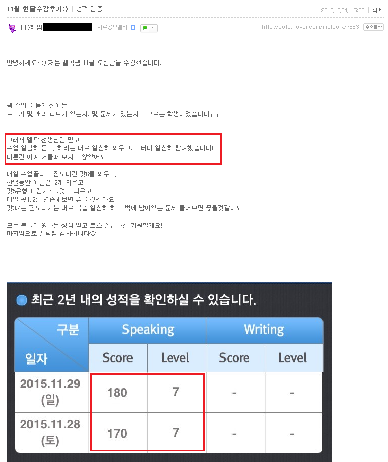 토스 | (대구토스 7급후기)선생님만 믿고 하라는대로 했더니^^ 한달 180점 7급 획득!! 페이지 정보 작성자 MELPARK 작성일15-12-07 17:04 조회4,373회 댓글0건 이전글 다음글 목록 본문 (클릭 하시면 크게 보실 수 있습니다.) 수강생 후기 입니다. 더 많은 후기는 우측 카페 링크 가입 후 보실 수 있습니다. 이전글 다음글 목록