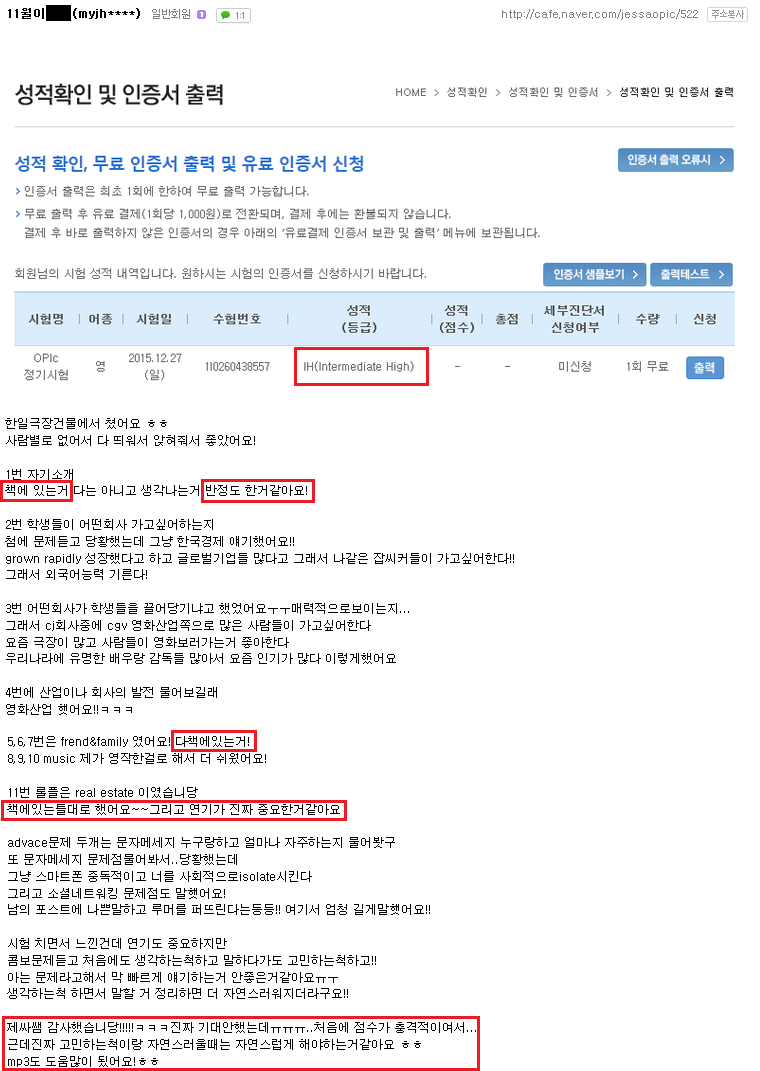 오픽 | (대구오픽 IH후기) 오픽 IH 두둥~!!! 책과 mp3가 도움이됬어요!^^ 페이지 정보 작성자 MELPARK 작성일16-01-06 14:47 조회4,025회 댓글0건 이전글 다음글 목록 본문 (클릭 하시면 크게 보실 수 있습니다.) 수강생 후기 입니다. 더 많은 후기는 우측 카페 링크 가입 후 보실 수 있습니다. 이전글 다음글 목록