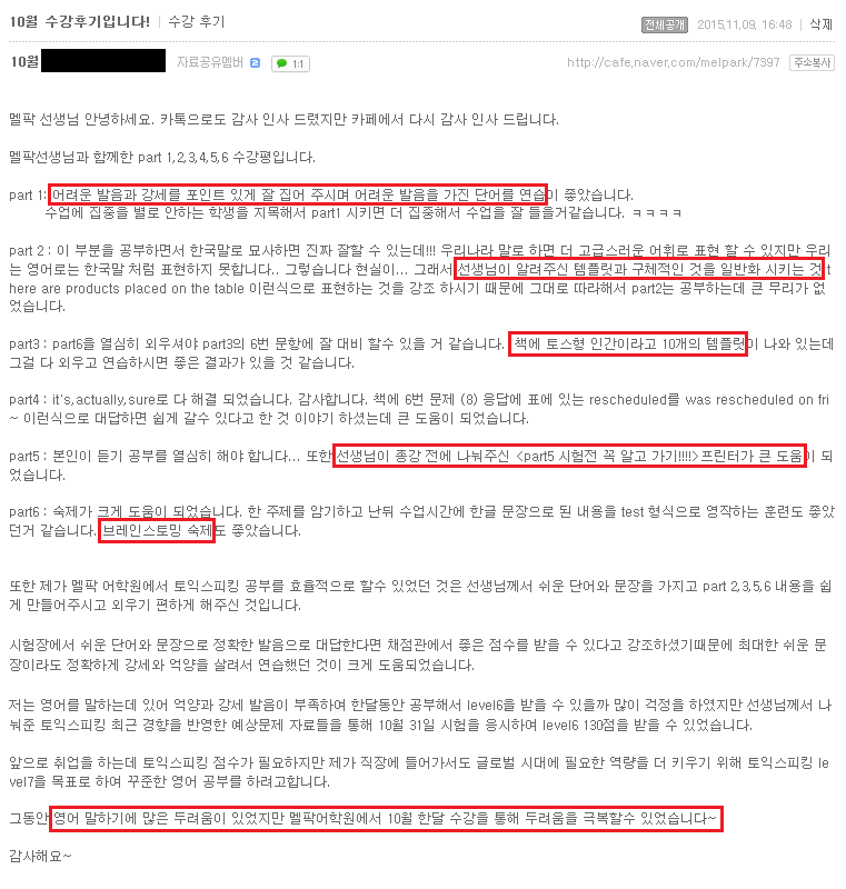 토스 | (대구토스 6급후기) 쉬운 단어와 문장으로 "한달완성" 페이지 정보 작성자 MELPARK 작성일15-11-10 10:20 조회4,707회 댓글0건 이전글 다음글 목록 본문 (클릭 하시면 크게 보실 수 있습니다.) 수강생 후기 입니다. 더 많은 후기는 우측 카페 링크 가입 후 보실 수 있습니다. 이전글 다음글 목록