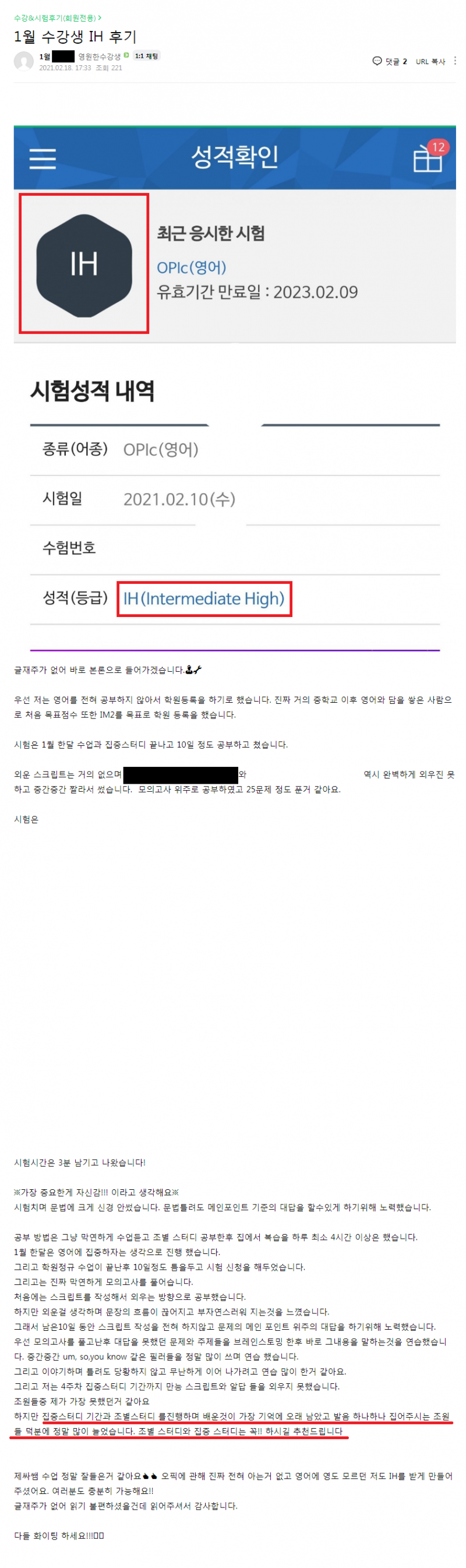 오픽 | (대구오픽 IH후기) 집중스터디, 조별스터디는 필수 중의 필수!! 페이지 정보 작성자 MELPARK 작성일21-03-05 14:42 조회8,086회 댓글0건 이전글 다음글 목록 본문 #멜팍어학원 #제싸오픽 #대구오픽 #대구오픽학원 이전글 다음글 목록